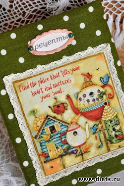 Кулинарная книга Очень мягкий и по деревенски уютный блокнот для самых любимых рецептов. Странички в нем состарены с помощью кофе. Внутри четыре подписанных раздела: "Закуски", "Горячее", "Десерты" и "Погребок" , каждый из них оформлен и каждая страница к каждому разделу проштампована разными штампами по теме в названии самого раздела. На заднем форзаце есть кармашек для мелких вырезок. Есть закладка, на конце которой подвеска - крохотная ложечка.