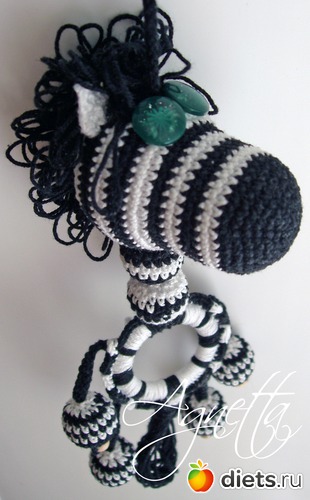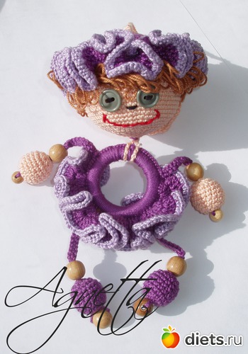 они развивают мелкую моторику малыша... Деткам нравятся маленькие шарики, которые можно зажать в кулачке, а если еще ими можно греметь или пошуршать, обсасывать вязаные шарики, пощупать пальчиком, кормить ими маму... игрушка, которая всегда с собой в пути, и не упадет на пол