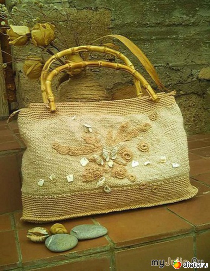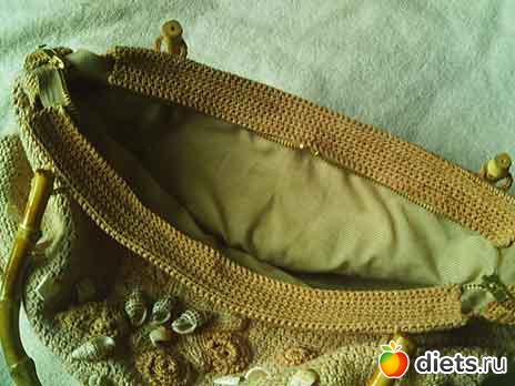 Сумка Размер сумки: 39х24 (без ручек. Сумка связана крючком, отделана аппликацией ,ракушками, ручки - бамбук(крепление -обвязанная прочная, капроновая нить) подклад в тон сумки - в мелкую полосочку.Дно усиленно.Предоплата. Пересылка за счёт покупателя.(200 рублей)