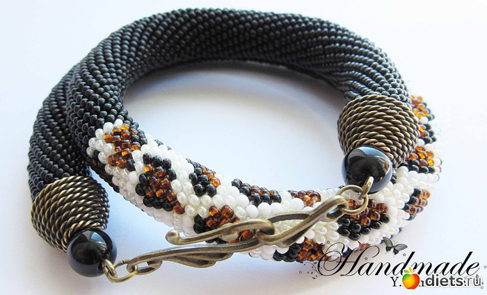 Жгут"Леопардовый" Жгут"Леопардовый". Материалы: Чешский бисер, металлическая фурнитура, бусины оникса.