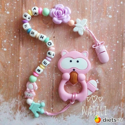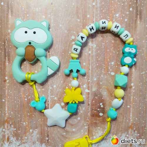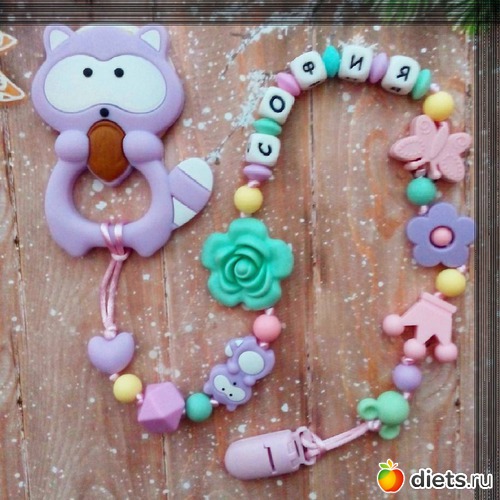 Любая мама старается купить своему ребенку только качественные вещи, а игрушки должны быть отличного качества и совершенно безопасные для здоровья малыша. Поэтому предлагаю приобрести именные аксессуары из безопасного, сертифицированного пищевого силикона-грызунки (прорезыватели), именные держатели сосочек, браслетики, слингобусики и брелоки.