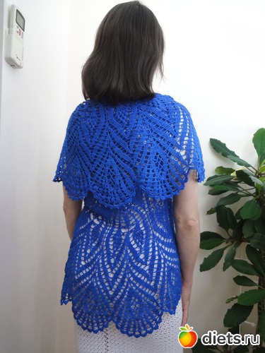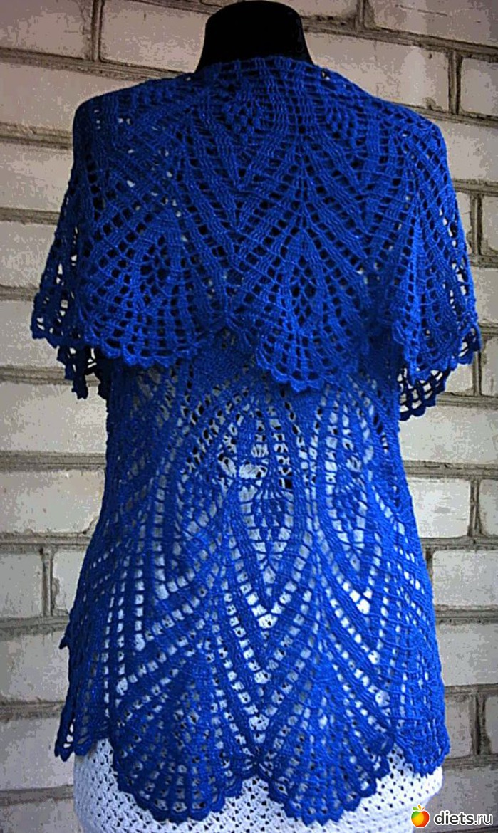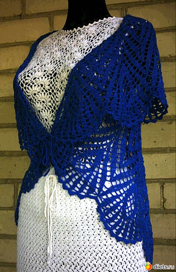 Болеро "перо Жар-птицы" Болеро связано из замечательной пряжи RIVA LUREX (50г/245м, 90% вискоза,10% люрекс) крючком... Размер 42-50... Носить его можно по-разному... И с брюами..., поверх водолазки или кофточки... и поверх вечернего платья...
