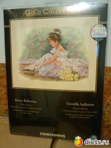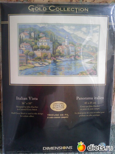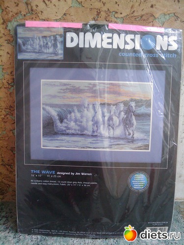 В состав входит: нитки, схема, белая наволочка (канва) с рюшами.