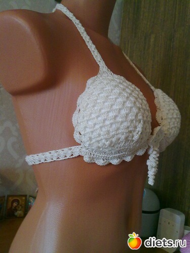 Вязаный купальник вязаный купальник ручная работа.состав 100%хлопок. размер 44 чашка 2