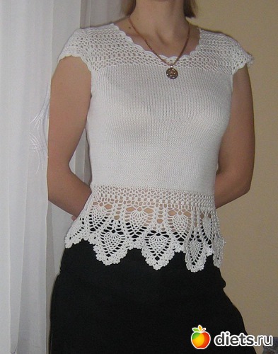 Блузы. топы в комбинированной технике Очень люблю кобинировать машинную вязку( придающую изделиям аккуратный и безупречный вид) и ажурную отделку крючком. Использую пряжу из натуральных волокон: хлопок. хлопок с вискозой. хлопок со льном. Для блестящих нарядных вариантов можно вязать из вискозы. пряжи с люрексом. Срок изготовления -10-15 дней в зависимости от загруженности. Доставка по РФ -130 руб.