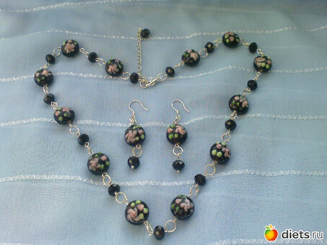 бусы и серьги "Ночные фиалки" бусы и серьги из чешских стеклянных бусинок и бусин-таблеток лэмпворк (итальянское стекло ручной работы). колье в единственном экземпляре, полностью ручная работа. подходит и для офиса и для "выхода в свет". швензы серёжек из серебра 925 пробы (клеймо проставлено). часть средств от продажи этого комплекта будет перечислена на счёт благотворительной организации.