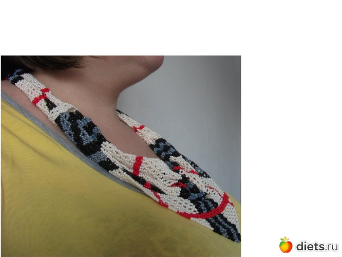 Косынка-колье из бисера "Burberry" Косынка-колье с не выходящей из моды расцветкой Burberry. Подойдет не только для клубной вечеринки, но и под строгий дресс код. Боковинки-колечки бежевого цвета перемещаюся и снимаются, создавая Ваш неповторимый образ. Можно носить под кофты с горлышком или на открытой шее, притягивая взгляды к декольте. В таком колье Вы не останетесь не замеченной! Длина колье за вычетом фурнитуры 64см. Возможна отправка почтой.