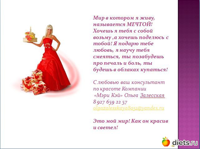 Красота с "Мэри Кэй" Милые дамы! Вам когда нибудь подбирали ваш,индивидуальный рецепт привлекательности?! Приглашаю вас посетить "Школу красоты "Мэри Кэй"