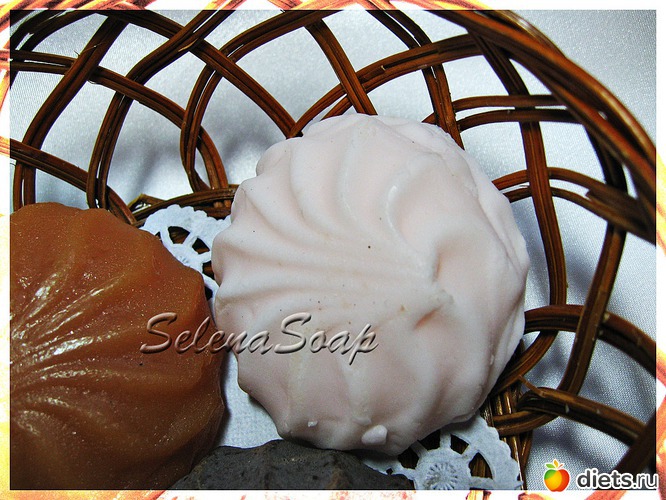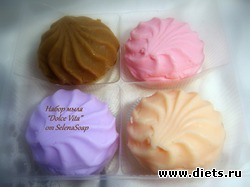 Мыло "Зефир" Мыло-зефир Dolce Vita Легкое и воздушное лакомство в виде мыла ручной работы. Форма изготовлена на основе настоящего зефира, поэтому возникает полное ощущение реального лакомства. Чудесные ароматы ягод и фруктов окутают вашу ванную комнату, а вы ощутите себя в маленькой французской кондитерской. Ухаживающие масла, входящие в состав окажут бережное влияние на вашу кожу, а удобное расположение мыла в руке подарит радость и ощущение комфорта. Ароматы: клубничный джем, ежевика, шоколад, ванильное молоко. Состав: основа мыльная (Англия SLS Free), парфюмерная композиция, масло абрикосовых косточек, витамины А и Е. вес 80 грамм Цена 80 руб