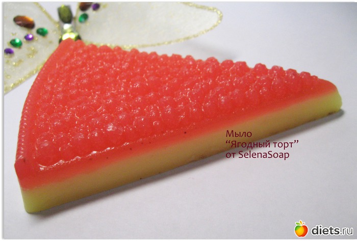 Мыло "Ягодный торт" Маленький ароматный кусочек ягодного пирога с ароматом ежевики и малины напомнит о недавнем лете. Ухаживающие масла авокадо и витамины, входящие в состав сделают кожу ухоженной. Возможно подарочное оформление. Вес 60 гр