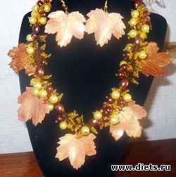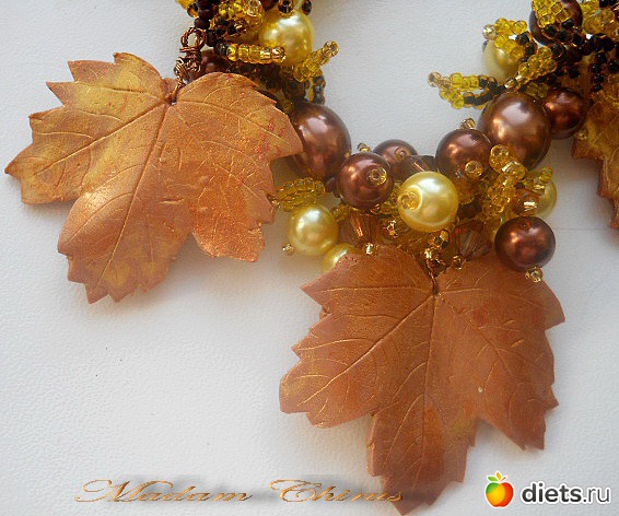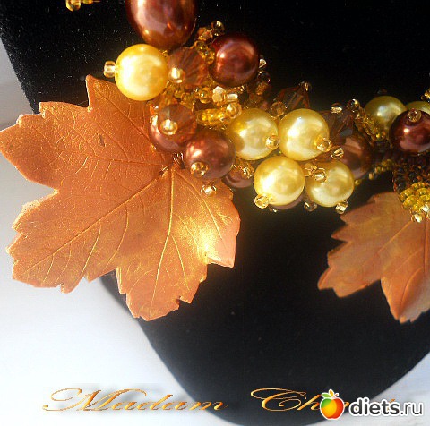 Медовая грусть Теплая,золотисто медовая осень, но немного грустная как любая осень.Сделана из полимерного пластика, чешского бисера, керамического жемчуга, чешских бусин.