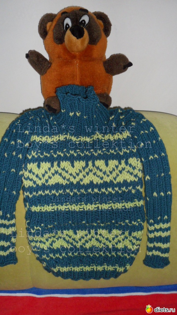 Королевский комплект для мальчика Королевский комплект для мальчика состоит из свитера+шапка связан спицами, жаккард, работа дизайнерская /автор Linda/