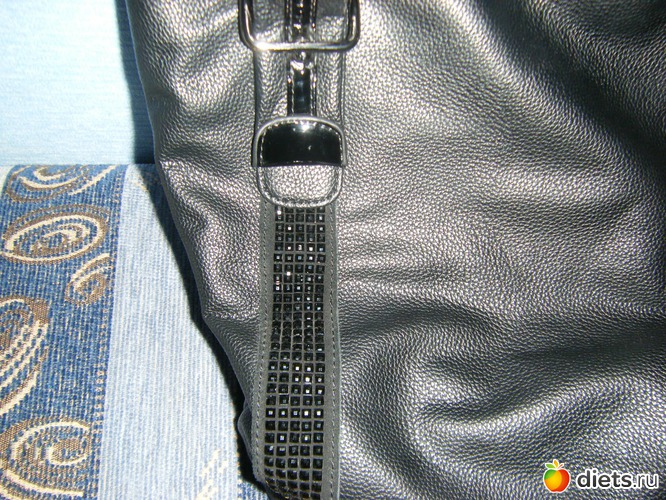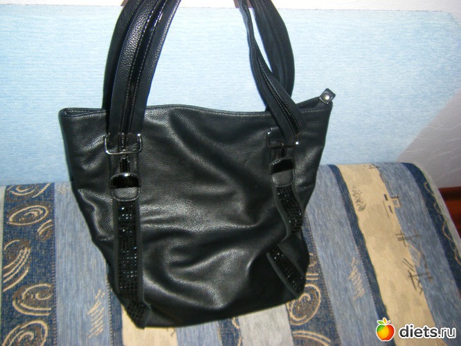 Продам сумку, новая Сумка из искусственной кожи, чёрная. Длина ремешка позволяет носить на плече. Вместительная: вертикально входит папка А4. Внутри два отделения, разделённые карманом на молнии, а также два маленьких кармана - один для мобильного и пошире. Снаружи украшена вставками из чёрных камушков: живо, но не вызывающе. Сзади ещё один карман на молнии.