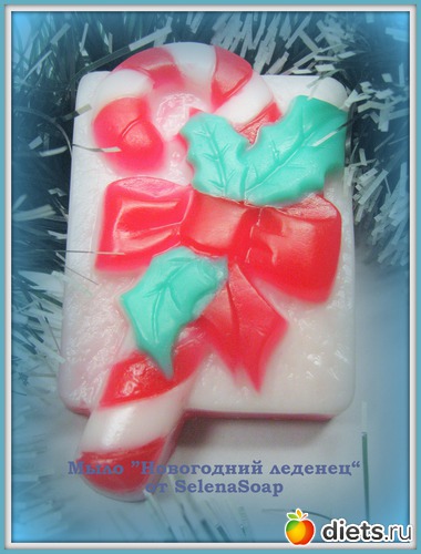 МЫЛО "НОВОГОДНИЙ ЛЕДЕНЕЦ" Какой праздник без сладостей. И какой Новый год без леденцов. Очень удобная форма мыла, оригинальное исполнение и теплые зимние ароматы - это новое мыло "Новогодний леденец". Состав: основа мыльная (Англия), пигменты, ароматы: новогодняя елка, глинтвейн, свежая клюква, праздничные сладости, на выбор. Вес: 85 г