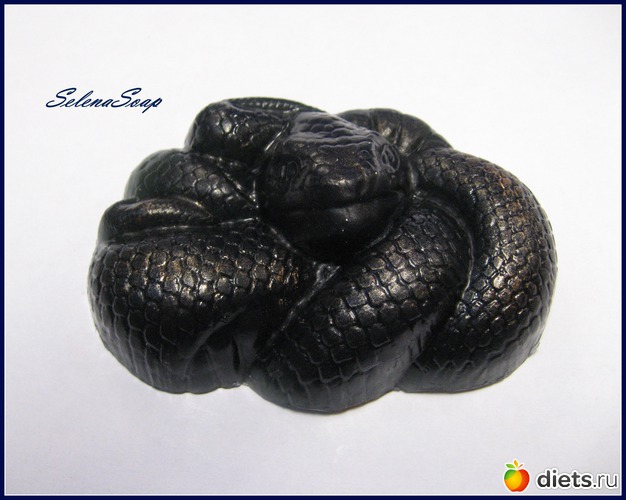 Мыло "Питончик" Мыло "Питончик" Еще одна змея в моей Новогодней коллекции мыла! Свернувшийся колечком питончик ждет своего часа для вступления в права символа года. Его шкура отливает золотом, сам он, символ спокойствия и мудрости. Одно из редких кусочков сувенирного мыла, которое очень удобно в использовании. Возможны различные цветовые варианты оформления. Также возможно ароматическое наполнение по вашему желанию. Состав: основа мыльная(Англия), косметическое масло авокадо, пигменты и микки, ароматизатор (Америка) Новогодняя елка или Свежая клюква (Америка). вес 65 гр