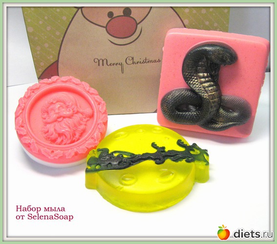 НАБОР МЫЛА "НОВОГОДНИЙ" Отличный подарок друзьям и близким! 3 ароматных кусочка новогоднего мыла расскажет им о вашей заботе и о неординарном подходе к выбору подарка. В набор входит мыло: дед мороз (аромат "свежая клюква"), Кобра (аромат "розовый сахар), лунные сани (аромат"Новогодняя елка), пакет, наполнитель.