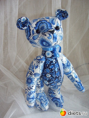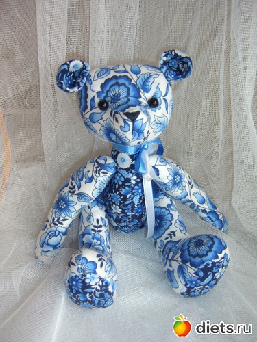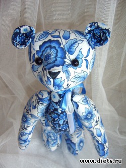 Мишка Гжелька Такой вот парень расписной! Красавиц! Лапки все подвижные, голова пришита, вполне может быть детской игрушкой! рост 25 см