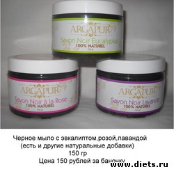 Марокканская натуральная косметика Чёрное мыло получают путём переработки плодов оливкового дерева в тщательно измельченную, однородную пасту. Как и любое мыло (а иначе бы оно так не называлось), чёрное мыло содержит кидроксид калия (щёлочь) и воду. Основная область применения чёрного мыла - проведение безабразивного пилинга. Методика заключается в удалении омертвевших клеток кожного эпителия при помощи предварительной эксфоллиации кожи и самого процесса пилинга при помощи рукавички кесса. Так же чёрное мыло применяется для ухода за чувствительной кожей лица, поскольку оно не содержит ароматизаторов, отдушек, красителей. Черное африканское мыло обогащено витамином Е, который позволяет коже оставаться молодой!