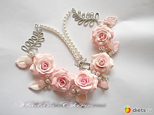 " Жемчужная нежность" Колье " Жемчужная нежность". Прекрасное дополнение к набору " Жемчужная нежность ( 1200р). При покупке полного набора Цена 2200р. Розы покрыты натуральным перламутром, использован жемчуг Сваровских, розовый кварц. Существует два варианта работы с серебристой вставкой и без нее( больше жемчуга и розового кварца)