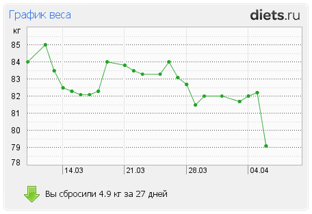 Хочу летом весить 60-62, сейчас 73 с копейками. Знаю, что это возможно, стоит только захотеть!