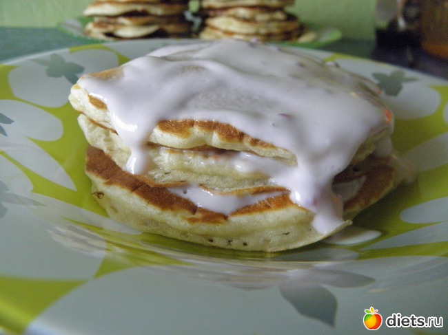 Мы с дочей сегодня на завтрак снова делали панкейки! С белым йогуртом и клубничным джемом! Блин объедение!