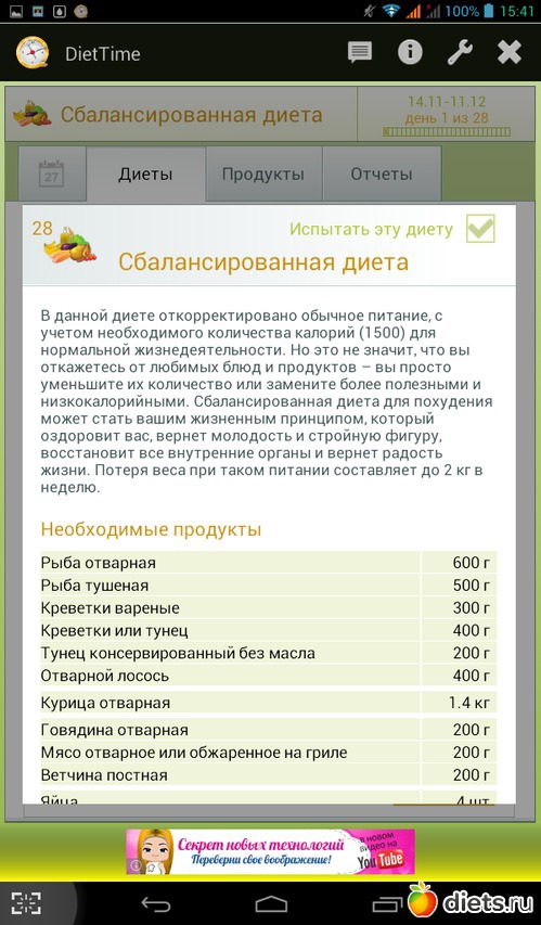 Калорийность продуктов