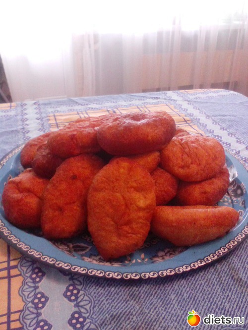 Вот называется сестра! Она о них думает, а я жарю!!!!! Тесто: стакан воды сырой, теплой’ пол пакетика дрожжей’ 2 ст.л.сахара 1,5ч.л.соли 2 стол.лмасла. муки сколько возмет-примерно 3 стакана. В теплое место на час или полтора- это на 16 пирожков