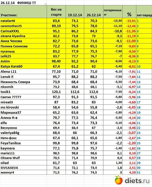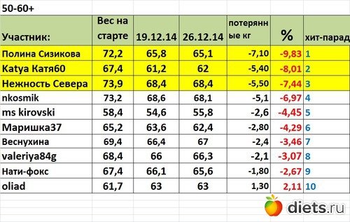 5. Процент сброшенного веса от изначального является осоновным критерием для выявления победителя, расчитываться будет по формуле: