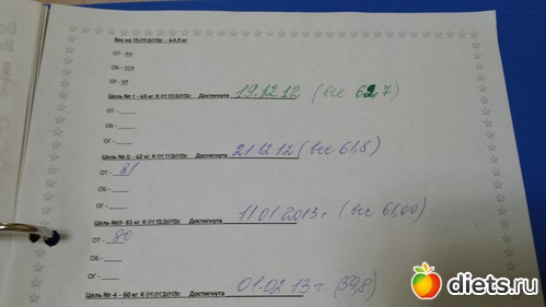 Я тоже цели себе написала, правда даты не проставила. Только на первую цель. Это все в дневнике нашего клуба написано!