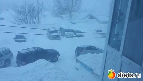 Это из зала во двор.Город замело конкретно,еще и скользко сейчас просто гололед...