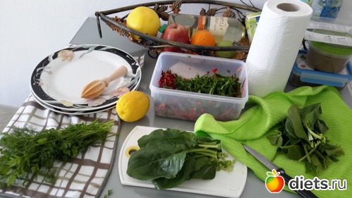 Моя готовка обеда , в меню салат из шпината, свеклы, морковки с лимоном и льняным маслом и рыба
