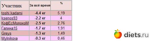 3 место достается katerina010886 и - 1,7 кг. Молодчинка
