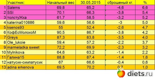 1место Salems -Умничка лучше всех постаралась подготовиться к лету! (Хотя победила только по кг,так как фото мы так и не увидели, так что победа на 50%)