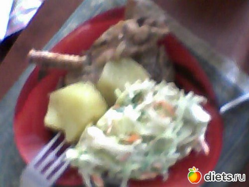 балланс в тарелке соблюдаю. наделала салата с овощами и сыром и картошку с крыльями потушила, охота было и то и это, а как в одну ладошку всё уместить? но я справилась