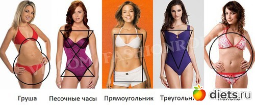 У меня песочные часы. Сразу поправляется живот, затем бедра, после спина. Руки-ноги всегда тонкие.