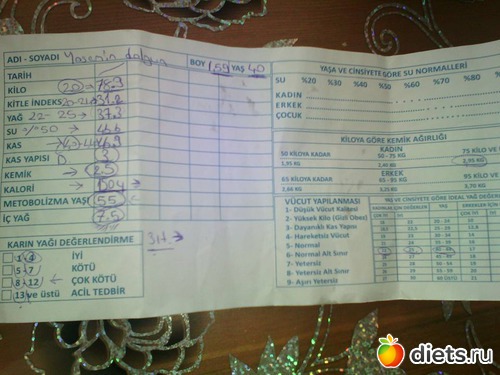 На Таните тоже взвешивалась здесь недели 3 назад..Воду в процентах,остальное в кило кажется.Я не особо разбираюсь в этом..
