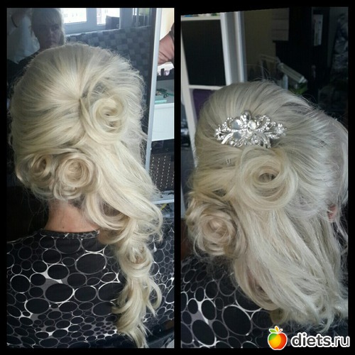 вот такая была причёска ,но растрепался хвостик к концу вечеринки...украшение с головы сняла...показалось,что перебор с ним.