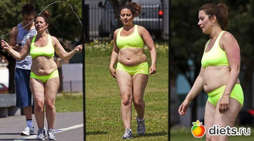 Фотографии бегающей Клер в ядовитом зеленом купальнике моментально стали предметом насмешек для миллионов и стимулом похудеть для самой Клер.