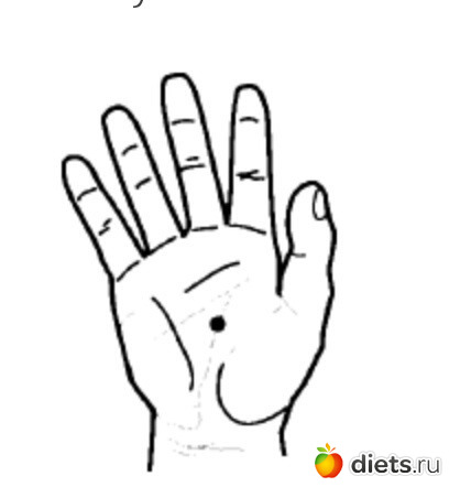 Выполнение. Большим пальцем руки следует прижать точку, расположенную прямо в середине ладони противоположной руки. Нажимать следует по пять раз на каждой руке. При нажатии сделать выдох, при ослаблении давления – вдох. Прием следует выполнять спокойно, не торопясь. Выполняя массаж одновременно воздействуют на кровеносную и дыхательные системы.