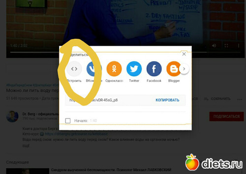 Под видео жмем “Поделиться”