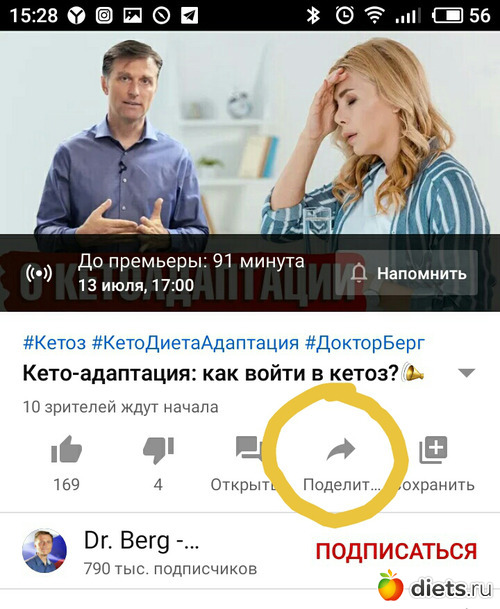 Находим под видео “Поделиться”. Жмем.