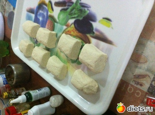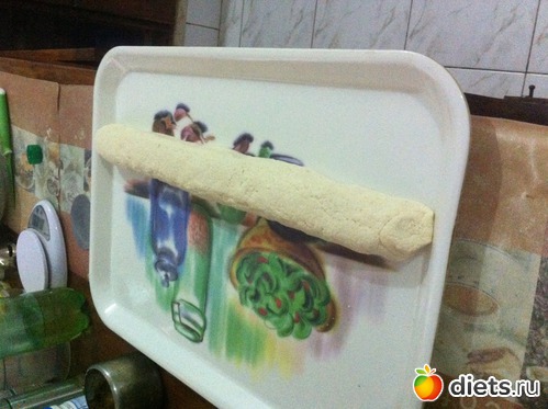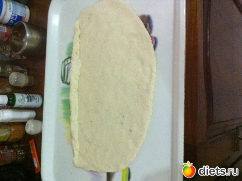 Я сделала так: тесто распластала и намазала кокосовым маслом (6г),свернула в рулет,прижимая на каждом витке