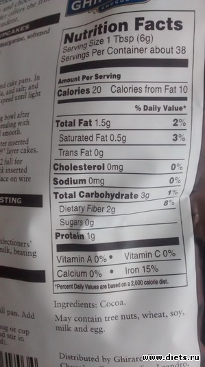 Просто в USA-какао пищевые волокна включены в общее количество углеводов, но выделены в нем отдельно.