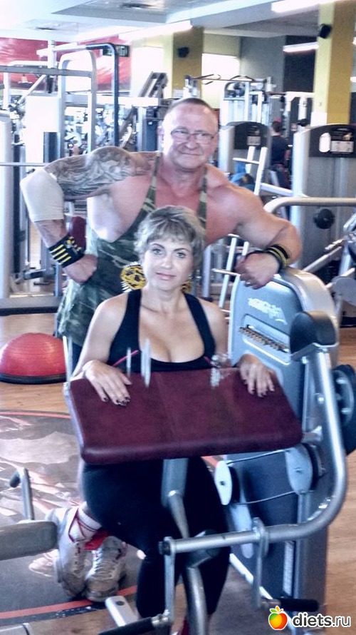 Фигура у тети отпадная,что редко встретишь у качальщиков.Ну а на вид-50+_2года,-точнее не скажу