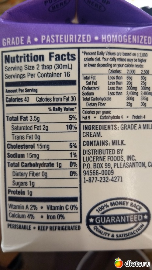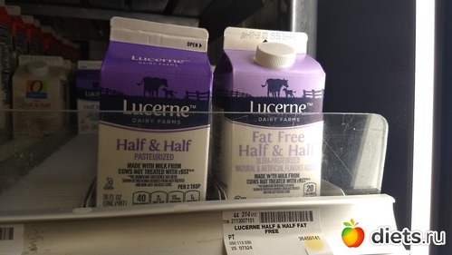 Тут продаются сливки средней жирности, half&half называются, где-то 12%, что ли. И вот стоят на полке две упаковки одного производителя, обычные сливки и обезжиренные