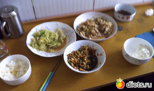 Про еду.Много отварной рыбы с костями, много коллагена - свиные ноги со шкурой и хрящами отварные, капуста отварная, много морепродуктов всяких разных, овощи мелко режутся и быстро бланшируются в масле-жире. На столе может быть до десяти блюд. Отдельно капуста, отдельно морковка, отдельно лук, отдельно орехи и огромное количество соусов. и т.д. Это все кладется к рису. Молочку не едят вообще,картофель не едят, сладкое не едят вообще - максимум фрукты или орехи в меде. Выпечку едят ооочень редко, можно сказать вообще не едят. Но ежедневно из кунжутной плюс рисовой муки может быть лепешка из риса на пару, жареные лепешки и отварные пельмени или лапша.