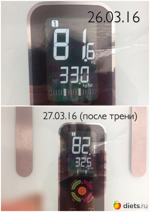А это бооольшой повод радоваться! Так как было две ударные тренировки, мышцы отекли, но жир сожгла! Как отеки схлынут-будет отвес, если плюс и останется-то это только супер-это мышцы подросли, которые в будущем сожгут еще больше жира! Чем больше мышечная масса-тем больше энергии она потребляет.
