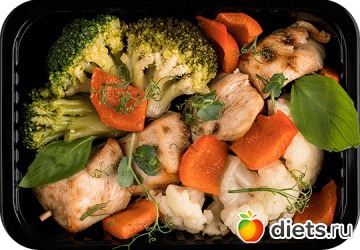 Вес порций примерно 180- 250 гр. Если хочешь, зайди к ним на сайт, посмотри меню FIT. Там оно выкладывается на каждый день с описанием блюд, калорийности и веса. Может чего себе подберешь. Все низкокалорийное, даже десерты. Соли практически нет. Все готовится без масла, Масло только в салаты идет в отдельной баночке.