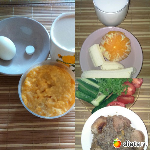 А это мое вчерашнее меню, без перекуса и без ужина, их не было...