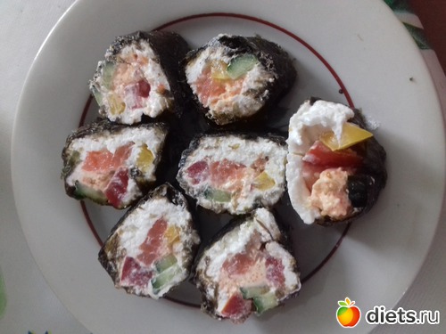 Разложим ролы по частям, сама делаю ролы и знаю какая заправка идет к рису, там соль, сахар и рисовый уксус, нам как раз нельзя